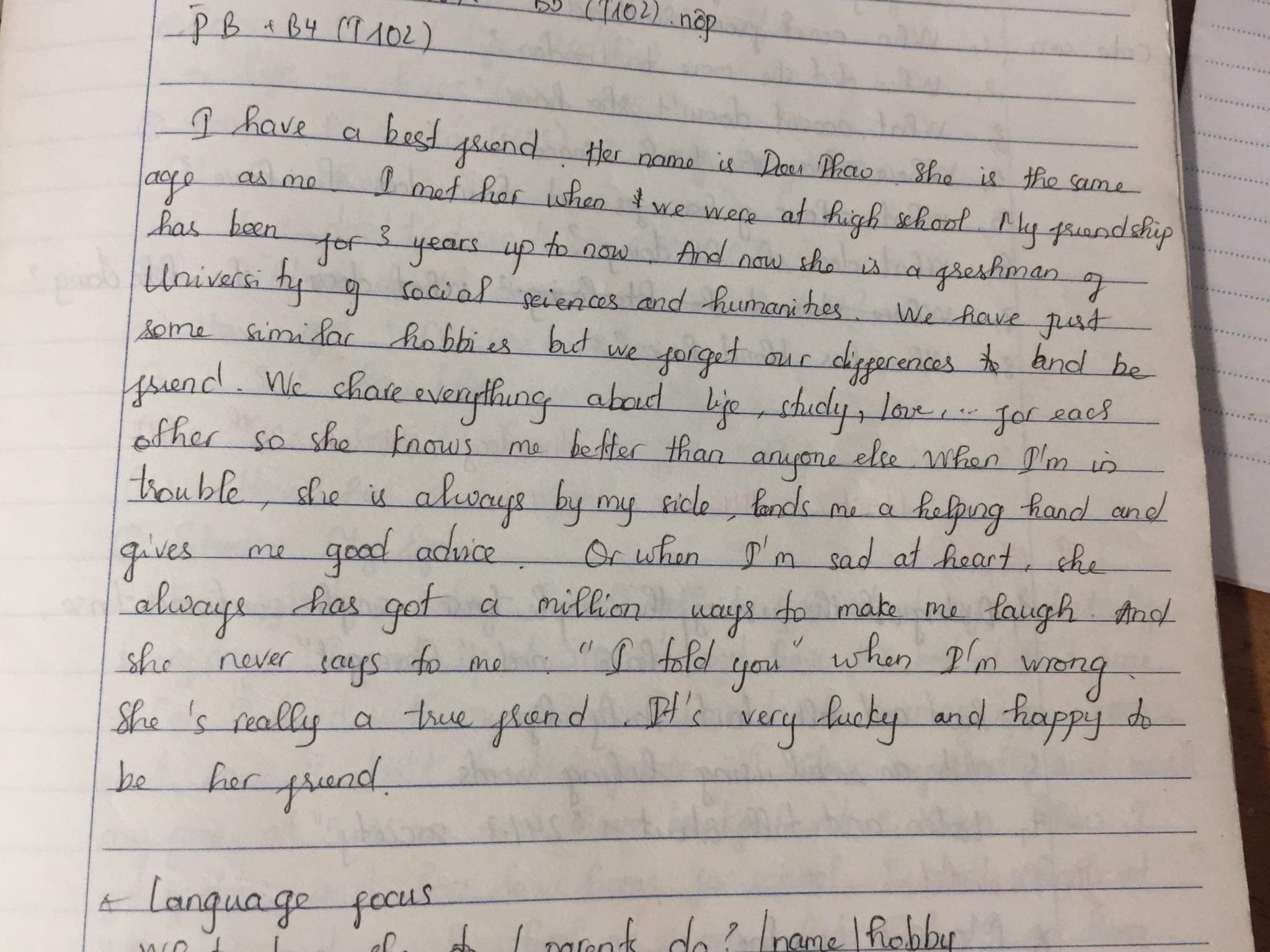 Người bạn thân nhất của mình là Béo. Béo nó yêu mình từ cái nhìn đầu tiên ở sân trường cấp 2 trên Huyện. Nó bảo, mình hồi ấy đeo cái nơ kẹp màu vàng to đùng trên tóc và nó nghe nói mình rất thông minh và giỏi (Hồi đó mình thi được giải Nhì môn Sinh Học Cấp Huyện nên vào đội thi HSG Cấp Tỉnh, à tất cả chỉ ăn may thôi, giờ ngáo rồi). Rồi nó còn nhớ mình ăn mặc như nào, đã cười nói khi ngồi ở ghế đá ra sao. Sau đó, tình cờ cấp 3, mình may mắn được vào lớp Chọn và học cùng lớp với Béo. Rồi chính thức chơi với nhau tới tận bây giờ.